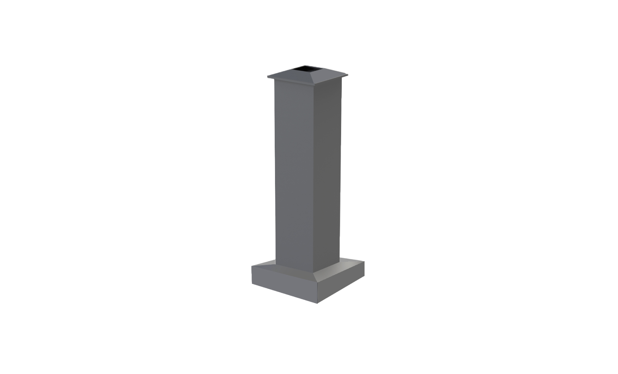 Base Material: One-piece decorative cast aluminum base. Marine grade copper free aluminum. Measures 3′ tall x 8″ wide. Base plate is 14″ SQ. Base Cover is 14.25″ SQ.